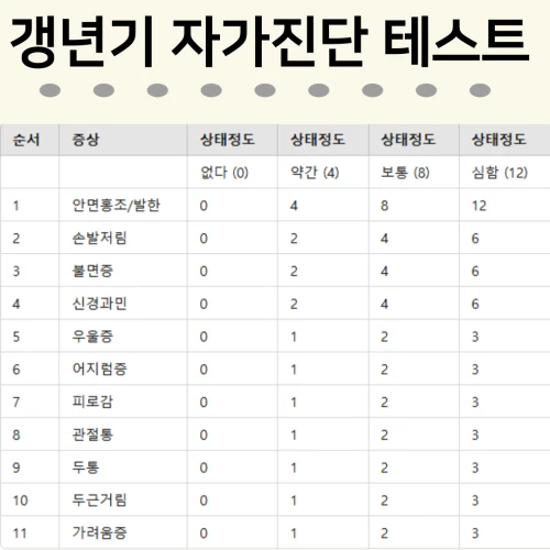 갱년기 자가진단 테스트 : 쿠퍼만 지수